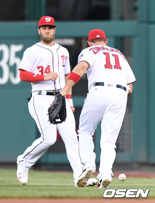 12일(한국시간) 미국 워싱턴 D.C 내셔널스 파크에서 열린 2017 메이저리그(MLB) 워싱턴 내셔널스와 세인트루이스 카디널스의 경기, 1회초 1사 디아즈의 내야뜬공때 워싱턴 짐머맨 1루수가 실책을 하고 있다. 그 사이 2루 주자 덱스트 파울러가 3루까지 진루했다/. / soul1014@osen.co.kr