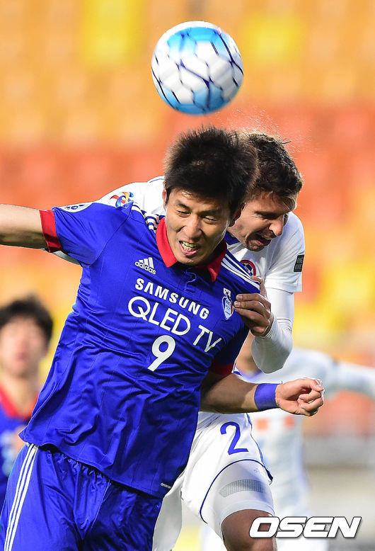 12일 오후 경기도 수원시 수원월드컵경기장에서 열린 2017 AFC 챔피언스리그 G조 조별예선 수원 삼성과 이스턴 SC의 경기 전반 박기동에 헤딩슛을 시도하고 있다. / baik@osen.co.kr