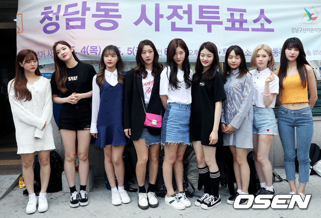 5일 오전 서울 강남구 청담동 주민센터에서 다이아 멤버들이 제 19대 대통령선거 사전투표를 하기 전 주민센터 앞에서 포즈를 취하고 있다. / eastsea@osen.co.kr
