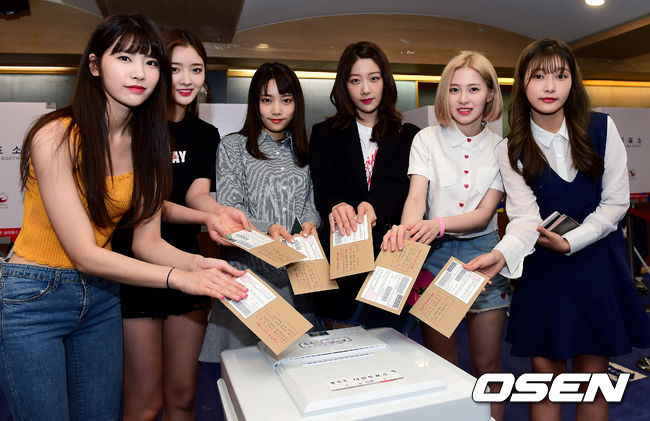 5일 오전 서울 강남구 청담동 주민센터에서 열린 제 19대 대통령선거 사전투표에 다이아 멤버들이 참석해 투표를 하고 있다. / eastsea@osen.co.kr