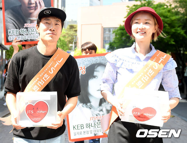 5일 오후 서울 명동 KEB하나은행 앞 특설무대에서 진행된 UN국제구호단체 JTS(Join Together Society) 거리모금 캠페인에 참석한 이희준, 이혜정 부부가 모금을 받고 있다. / youngrae@osen.co.kr