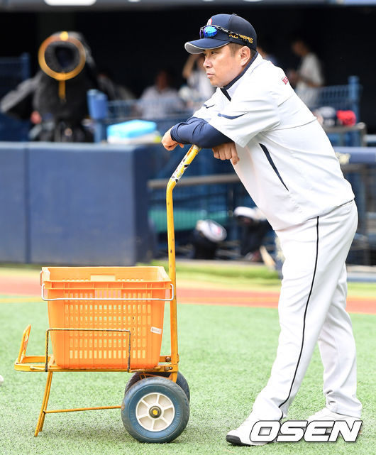 6일 서울 잠실야구장에서 열리는 '2017 타이어뱅크 KBO 리그' 두산 베어스와 삼성 라이온즈의 경기를 앞두고, 두산 김태형 감독이 선수들의 훈련을 바라보고 있다. /dreamer@osen.co.kr