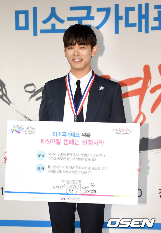 가수 에릭남이 4일 오전 서울 중구 티마크그랜드호텔에서 진행된 2017 명예미소 국가대표 위촉식 참석해 포토타임을 갖고 있다. / youngrae@osen.co.kr