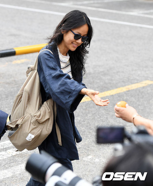 가수 이효리가 7일 오전 서울 영등포구 여의도동 KBS 신관공개홀에서 진행된 '뮤직뱅크' 리허설 포토행사에 참석해 취재진이 건넨 과일을 받고 있다. /jpnews@osen.co.kr