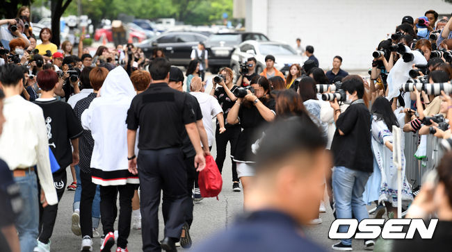 가수 NCT 127이 7일 오전 서울 영등포구 여의도동 KBS 신관공개홀에서 진행된 '뮤직뱅크' 리허설에 참석했다. 몇몇 팬들이 안전 라인을 넘어서 NCT 127를 촬영하고 있다. /jpnews@osen.co.kr