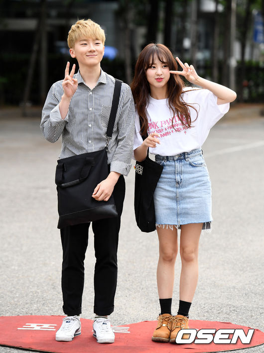 가수 재율, 앤씨아가 7일 오전 서울 영등포구 여의도동 KBS 신관공개홀에서 진행된 '뮤직뱅크' 리허설 포토행사에 참석해 포즈를 취하고 있다. /jpnews@osen.co.kr