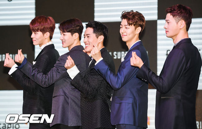 7일 오후 서울 여의도 글래드 호텔에서 진행된 판타지오의 두 번째 배우 그룹 '서프라이즈 U(김현서, 윤정혁, 은해성, 지건우, 차인하) 데뷔 쇼케이스에서 서프라이즈U가 포즈를 취하고 있다.