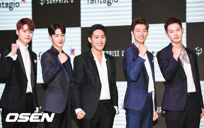 7일 오후 서울 여의도 글래드 호텔에서 진행된 판타지오의 두 번째 배우 그룹 '서프라이즈 U(김현서, 윤정혁, 은해성, 지건우, 차인하) 데뷔 쇼케이스에서 서프라이즈U가 포즈를 취하고 있다.