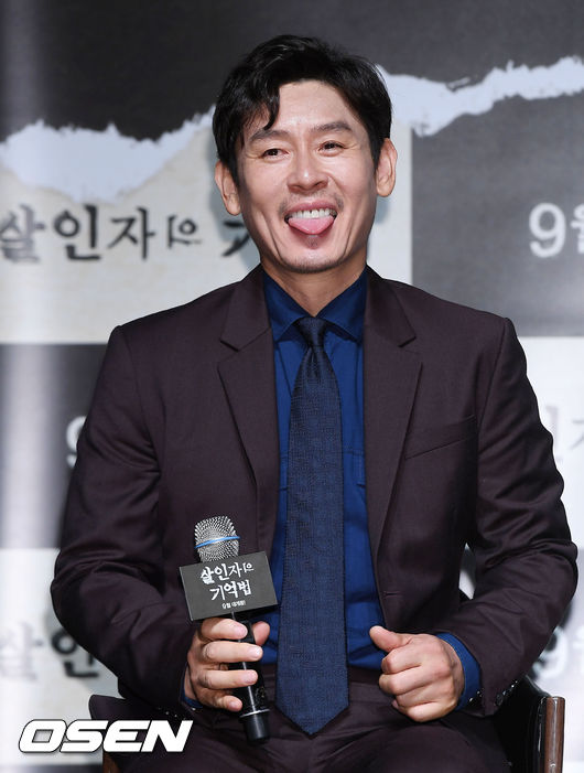 8일 오전 서울시 강남구 압구정CGV에서 열린 영화 '살인자의 기억법' 제작보고회서 설경구가 질문에 답하며 혀를 내밀고 있다. / rumi@osen.co.kr