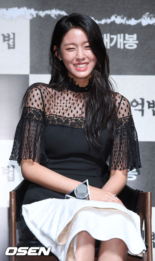 8일 오전 서울시 강남구 압구정CGV에서 열린 영화 '살인자의 기억법' 제작보고회서 김설현이 미소짓고 있다. / rumi@osen.co.kr
