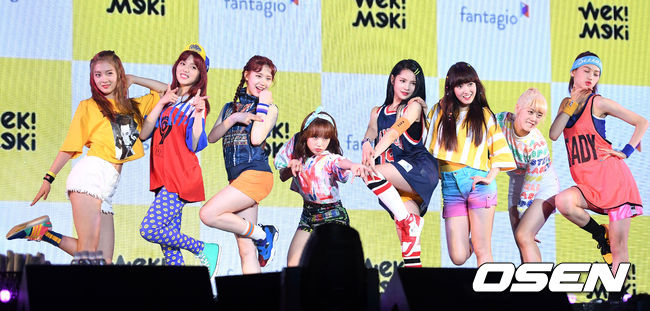 걸그룹 위키미키가 8일 오후 서울 중구 장충체육관에서 진행된 데뷔앨범 '위미(Weki Meki 1st Mini Album WEME)' 발매 기념 쇼케이스에 참석해 포토타임을 갖고 있다./sunday@osen.co.kr