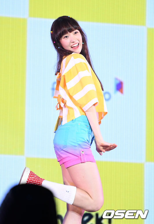 걸그룹 위키미키 세이가 8일 오후 서울 중구 장충체육관에서 진행된 데뷔앨범 '위미(Weki Meki 1st Mini Album WEME)' 발매 기념 쇼케이스에 참석해 포토타임을 갖고 있다./sunday@osen.co.kr