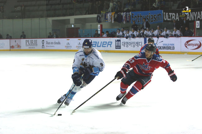 하지만 한라는 곧바로 승부를 원점으로 돌렸다. 최근 들어 쾌조의 컨디션을 보이고 있는 ‘공격형 디펜스’ 이돈구가 대명의 허를 찌르며 동점골을 만들어냈다. 한라 골 라인 선상에서 퍽을 잡은 이돈구는 디펜시브존과 뉴트럴존을 단독 돌파, 오펜시브존 블루라인 선상에서 슈팅을 날렸고, 상대 골문 뒤쪽 글래스에 리바운드된 퍽을 문전으로 쇄도하며 재차 슈팅, 골 네트를 갈랐다. 이돈구의 올 시즌 첫 번째 골.