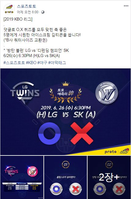 26일(수)에 열리는 2019 KBO 리그 LG-SK전 O,X 퀴즈 맞히기