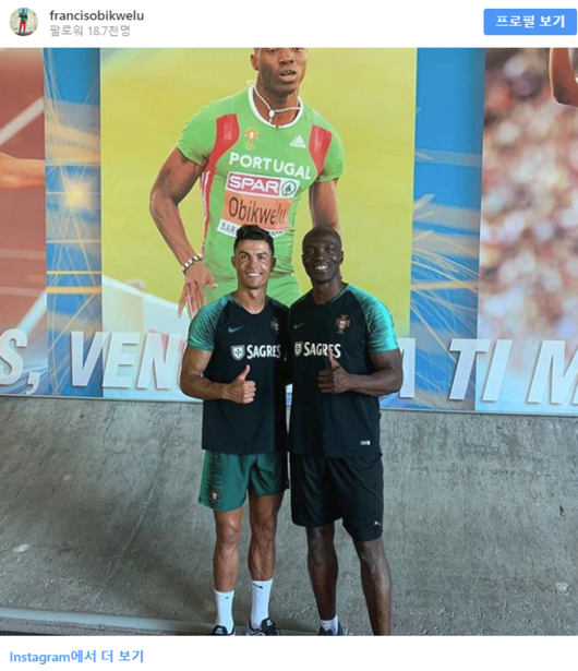 영국 '더 선'은 2일(한국시간) "크리스티아누 호날두는 새 프리 시즌 시작을 위해 단거리 육상 챔피언 프란시스 오비크웰루와 훈련을 가졌다"라고 보도했다.
