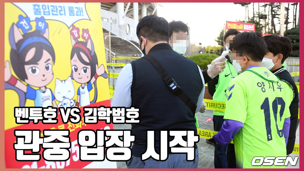 경기장을 찾은 팬들이 입장에 앞서 발열체크를 진행하고 있다. /sunday@osen.co.kr
