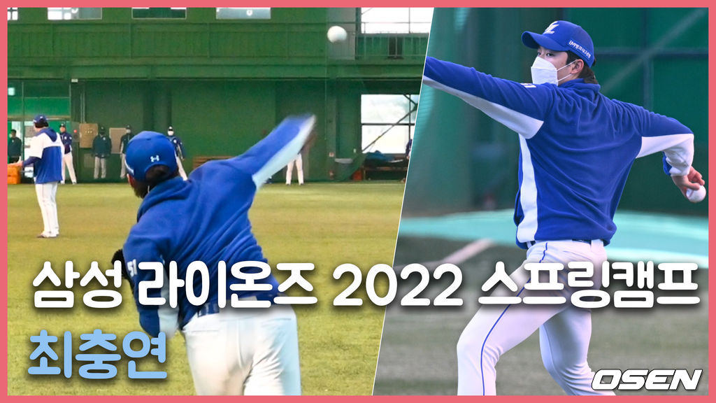지난 2020시즌 음주운전, 오른쪽 팔꿈치 인대 접합 수술로 자숙과 재활의 시간을 가진 삼성 최충연이 2022시즌 스프링캠프로 돌아왔다.
