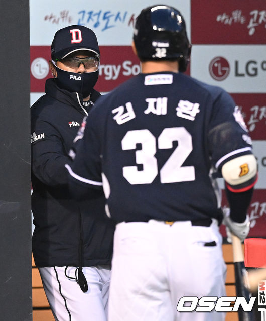 김재환의 2루수 땅볼로 2루에서만 아웃, 3루 주자는 득점했다. 이어 1사 1,3루에서 허경민이 우익수 희생플라이로 2-0을 만들었다.