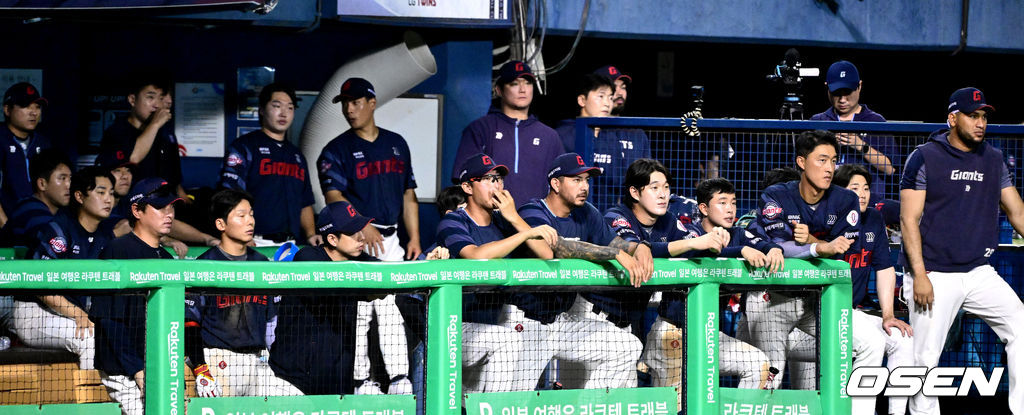 9회초 공격 때 롯데 더그아웃 선수들이 무거운 표정으로 경기를 주시하고 있다. 2025.08.20 / dreamer@osen.co.kr