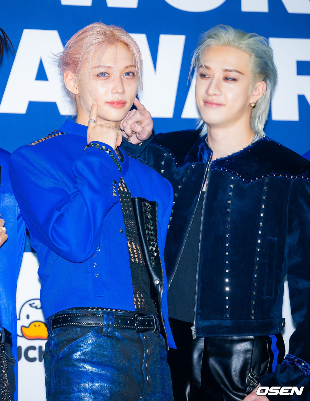 스트레이 키즈(Stray Kids) 필릭스와 방찬이 입장하며 포즈를 취하고 있다. 2025.08.21 /rumi@osen.co.kr