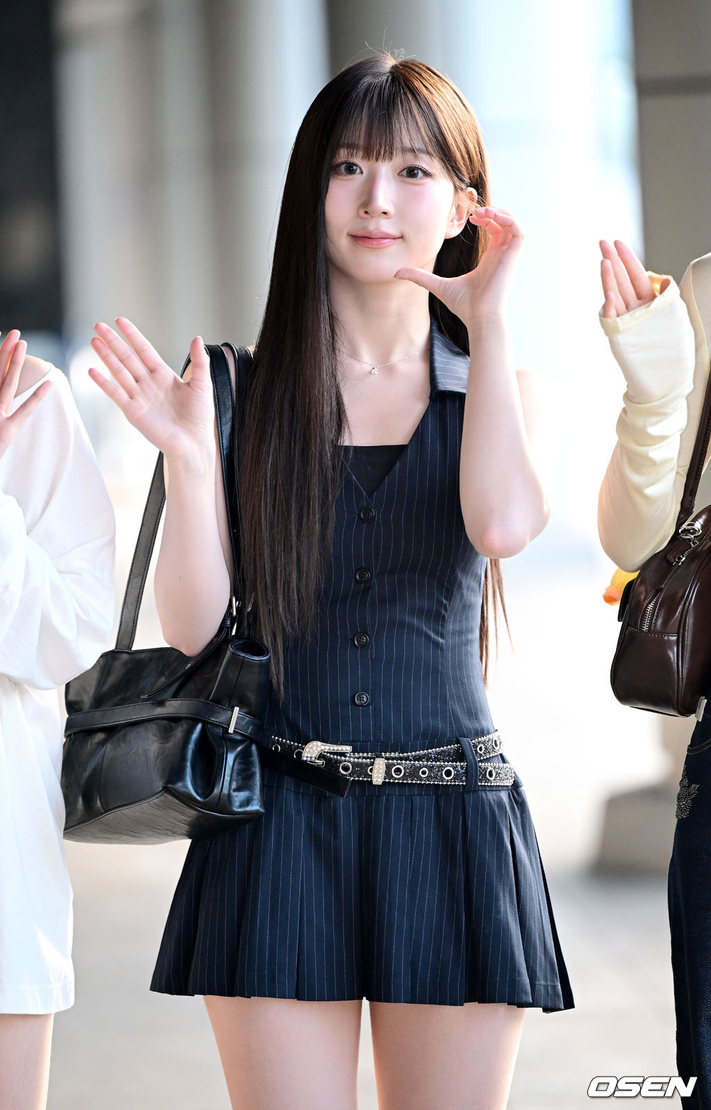 엔믹스 해원을 비롯한 멤버들이 출국장으로 향하며 팬들과 취재진을 향해 인사를 전하고 있다. 2025.08.23 / dreamer@osen.co.kr