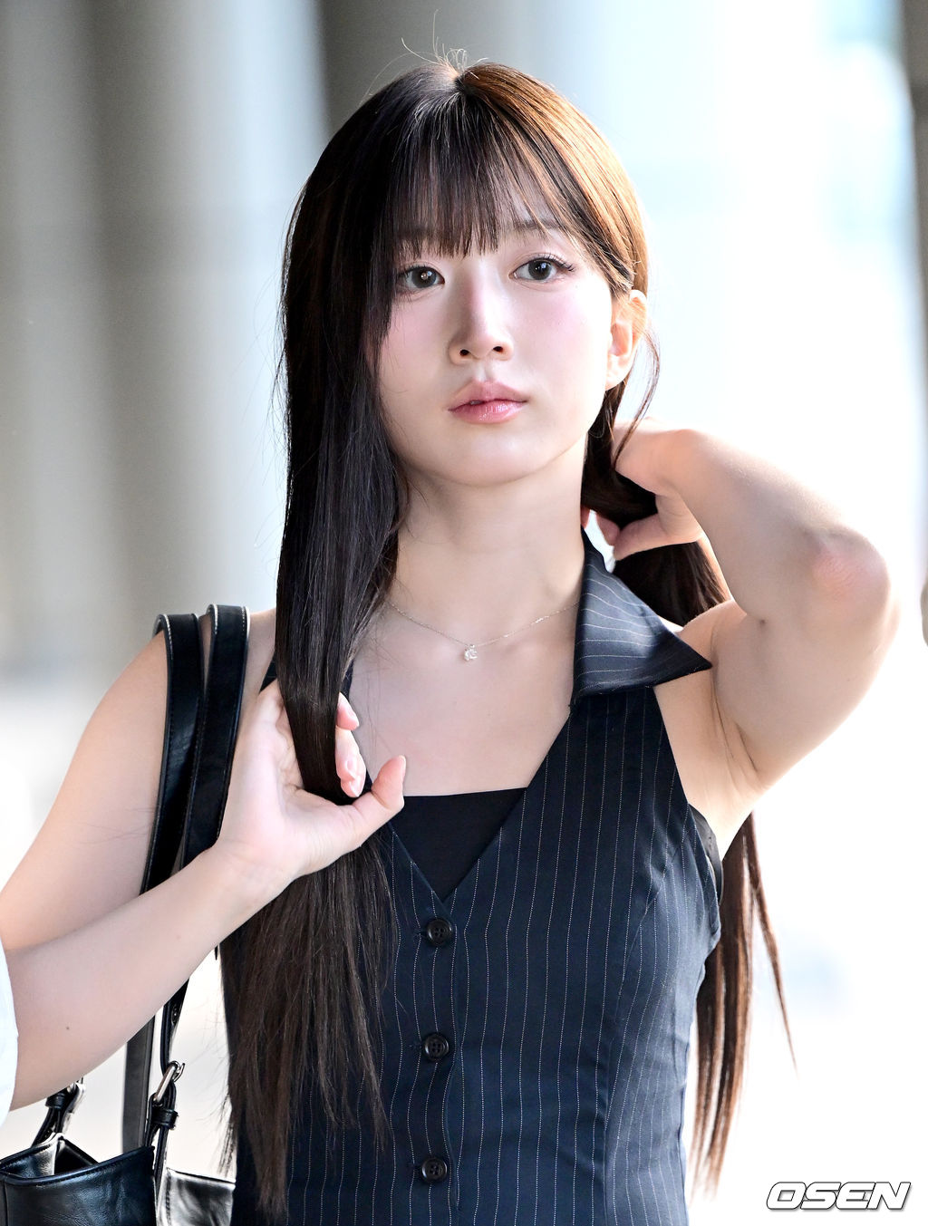 엔믹스 해원을 비롯한 멤버들이 출국장으로 향하며 팬들과 취재진을 향해 인사를 전하고 있다. 2025.08.23 / dreamer@osen.co.kr