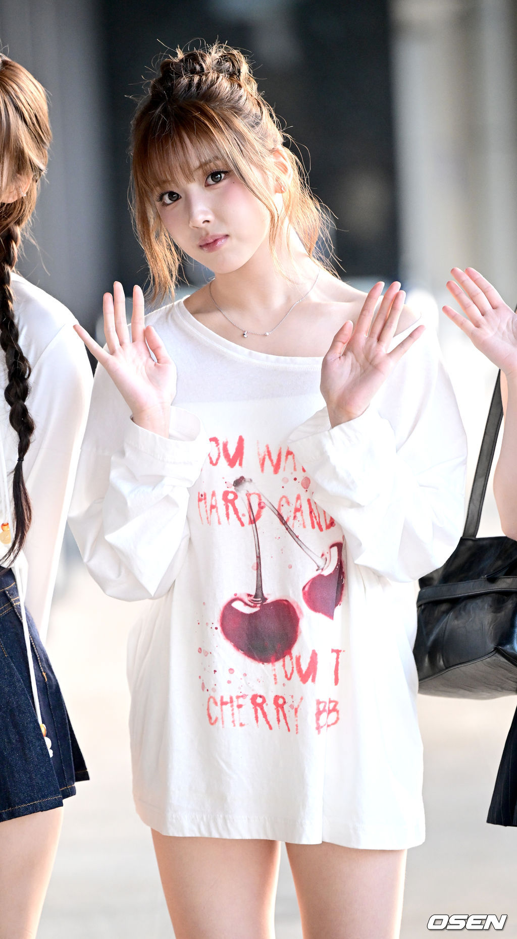 엔믹스 지우를 비롯한 멤버들이 출국장으로 향하며 팬들과 취재진을 향해 인사를 전하고 있다. 2025.08.23 / dreamer@osen.co.kr