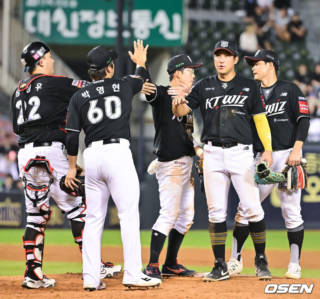 경기종료 후 KT 선수들이 승리의 기쁨을 나누고 있다. 2025.08.23 / soul1014@osen.co.kr