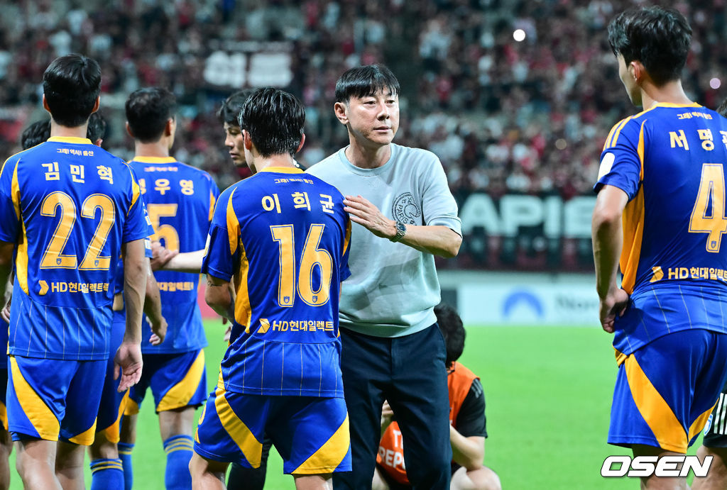 경기종료 후 울산 신태용 감독이 선수들을 다독이고 있다. 2025.08.24 / soul1014@osen.co.kr