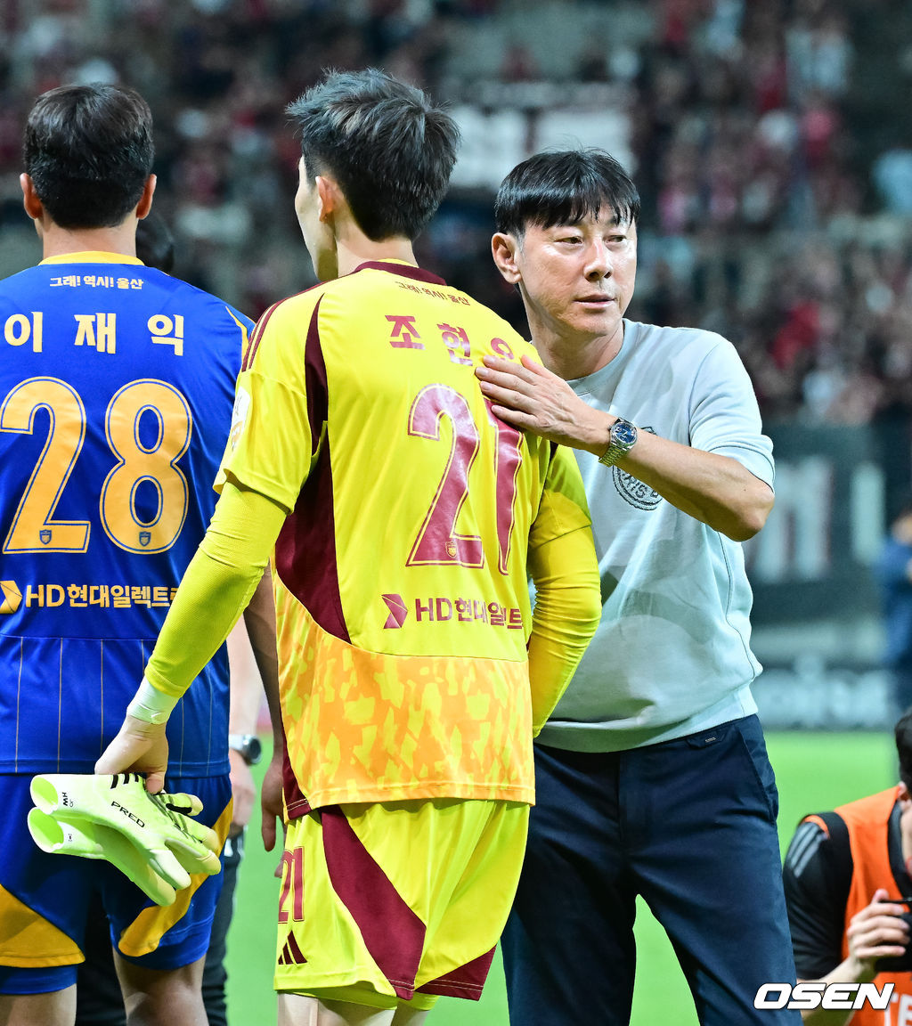 경기종료 후 울산 신태용 감독이 조현우 골키퍼를 다독이고 있다. 2025.08.24 / soul1014@osen.co.kr