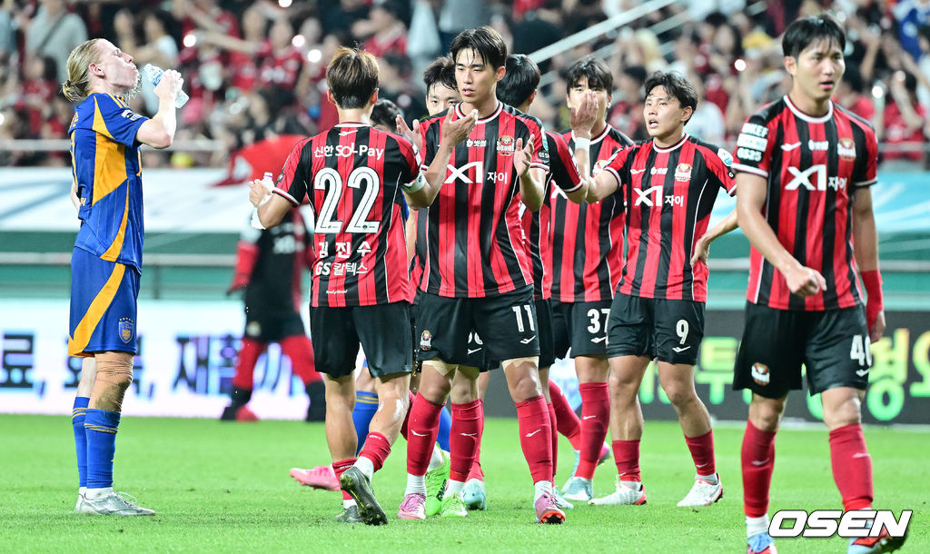경기종료 후 FC서울 선수들이 승리의 기쁨을 나누고 있다. 2025.08.24 / soul1014@osen.co.kr