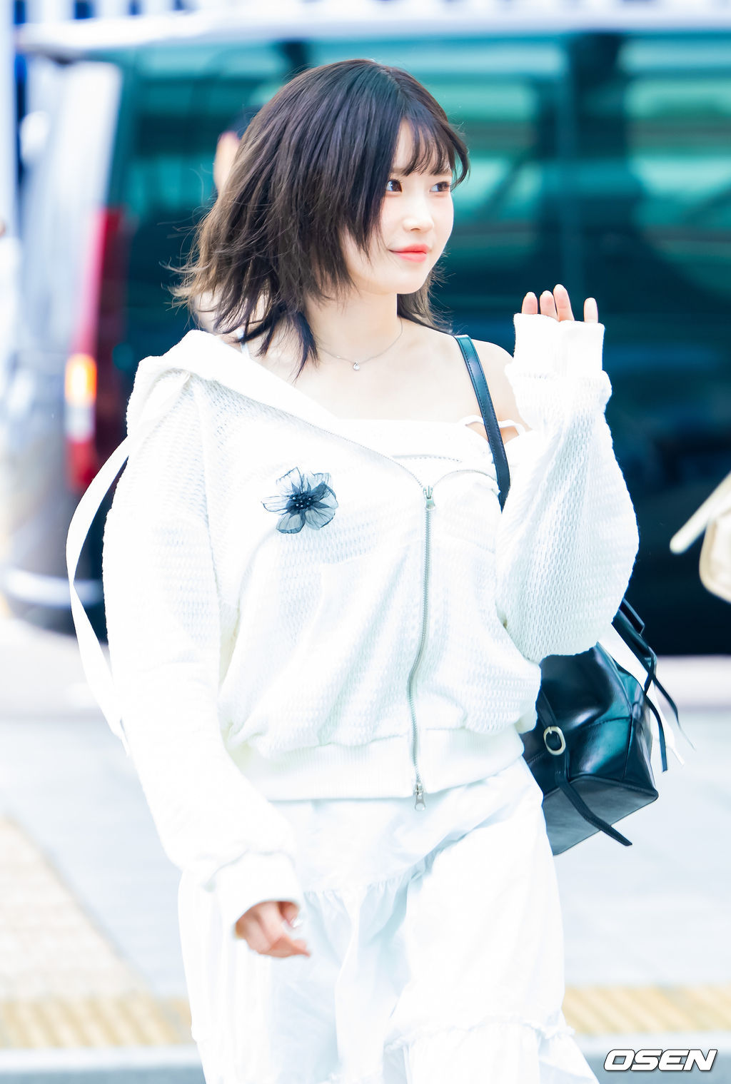 프로미스나인 송하영이 출국장으로 향하며 포즈를 취하고 있다. 2025.08.25 /rumi@osen.co.kr