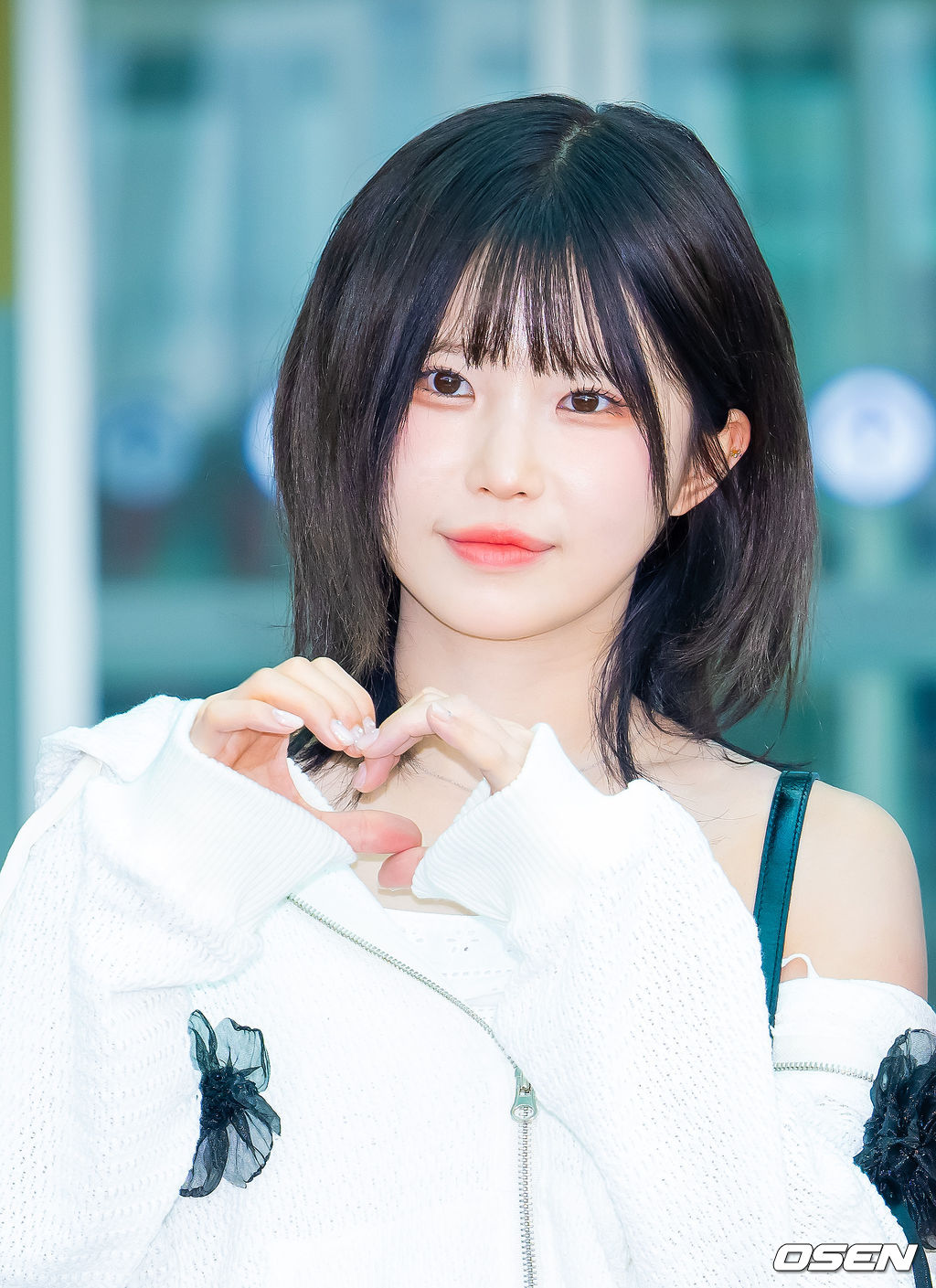 프로미스나인 송하영이 출국장으로 향하며 포즈를 취하고 있다. 2025.08.25 /rumi@osen.co.kr