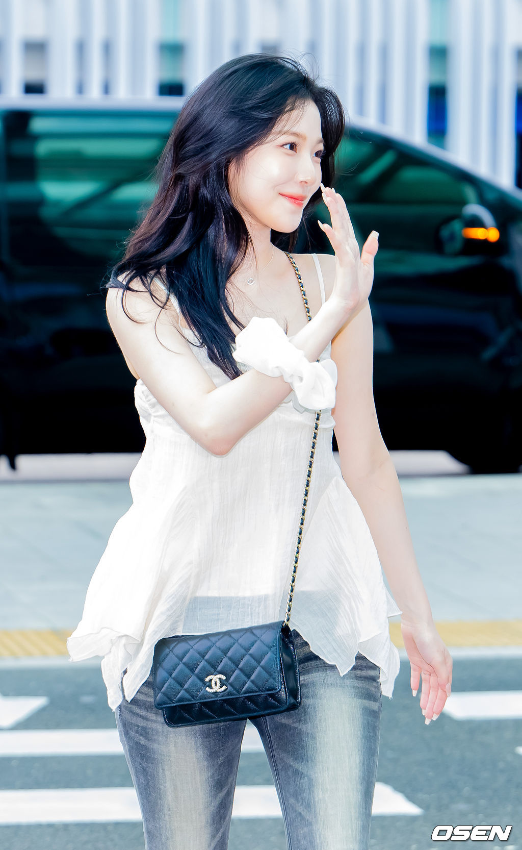 프로미스나인 백지헌이 출국장으로 향하며 포즈를 취하고 있다. 2025.08.25 /rumi@osen.co.kr