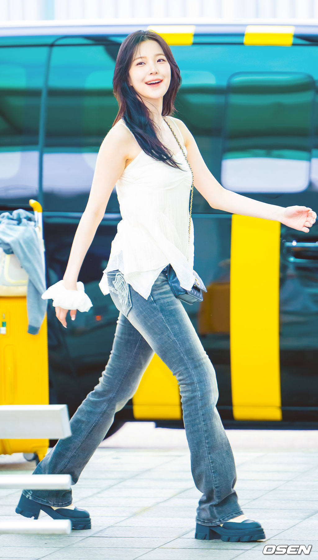 프로미스나인 백지헌이 출국장으로 향하며 포즈를 취하고 있다. 2025.08.25 /rumi@osen.co.kr