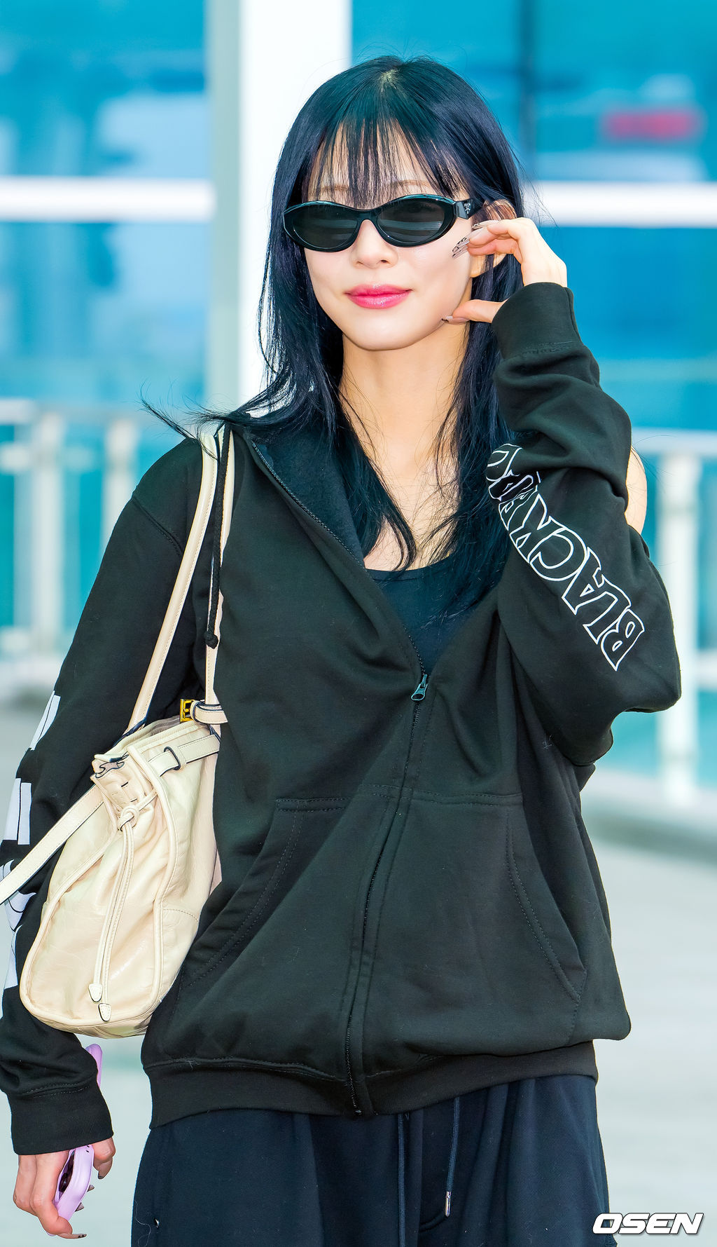 프로미스나인 이채영이 출국장으로 향하며 포즈를 취하고 있다. 2025.08.25 /rumi@osen.co.kr