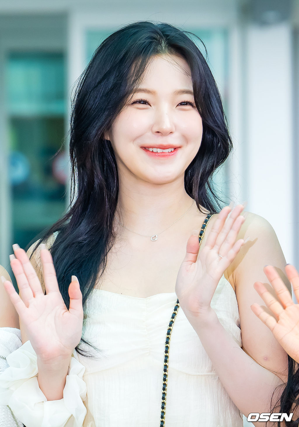 프로미스나인 백지헌이 출국장으로 향하며 포즈를 취하고 있다. 2025.08.25 /rumi@osen.co.kr