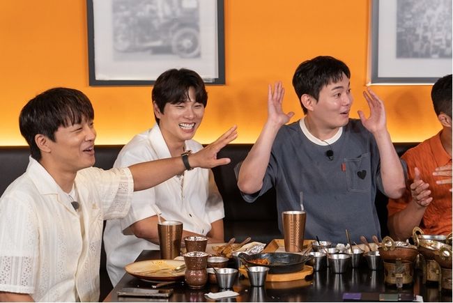 이와 함께 '뽀블리의 절친' 차태현과 류경수가 폭주하는 식욕 탓에 '핸썸즈'의 새로운 금쪽이로 거듭나며 배꼽을 잡게 한다. 점메추 메뉴로 인도 음식을 선택한 탓에 태국 음식점에서 쫄쫄 굶고 있던 차태현이 '푸팟퐁커리'를 참지 못하고 그릇 째 들고 가 음식 스틸을 감행한 것. 이에 '태국 팀'의 원성이 쏟아지자 혼란한 틈을 노려 류경수 마저 음식 스틸에 동참, 은은한 광기로 폭소를 자아낸다고. 이에 차태현, 류경수의 익살스런 케미가 웃음을 더할 '핸썸즈' 본 방송에 기대감이 고조된다.