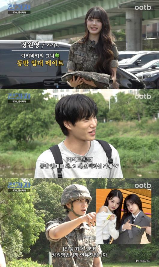 ‘재입대’ 사태에 눈을 질끈 감은 카이와 달리 장원영은 “동반 입대 괜찮지 않나요? 재밌을 것 같은데~”라며 시작부터 ‘럭키비키 마인드’를 뽐낸다. 더욱이 장원영은 입대를 자원하게 된 비하인드 스토리를 밝히면서 “재밌을 것 같다”고 해 카이를 놀라게 한다. 카이는 “나도 선배지만 마인드를 한 수 배운다”며 리스펙한다.