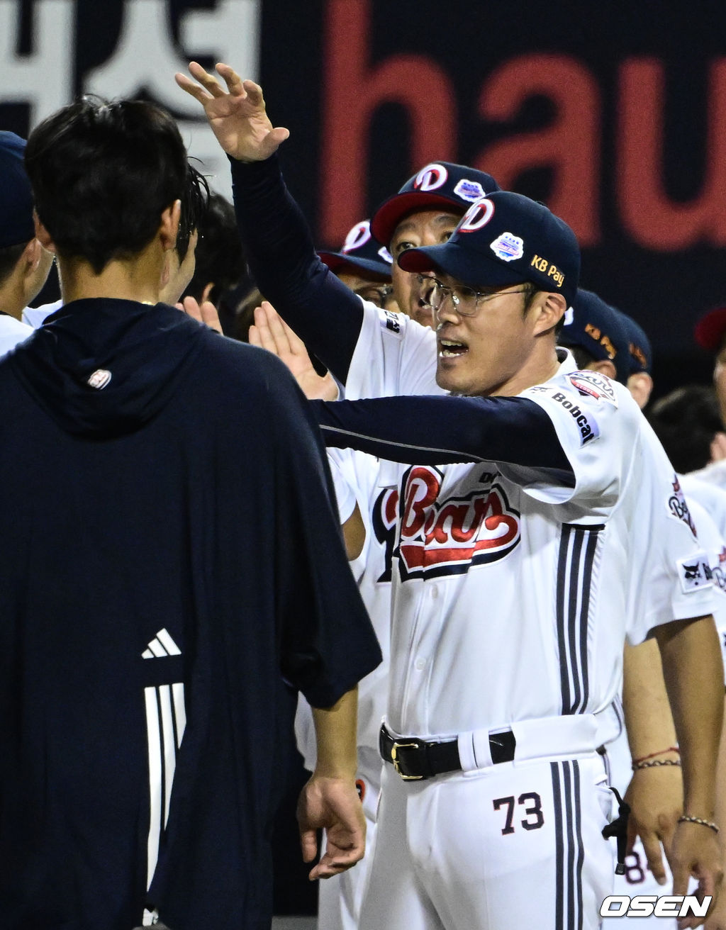 조성환 감독대행, '끝내기타 날린 안재석 향해 격한 축하'