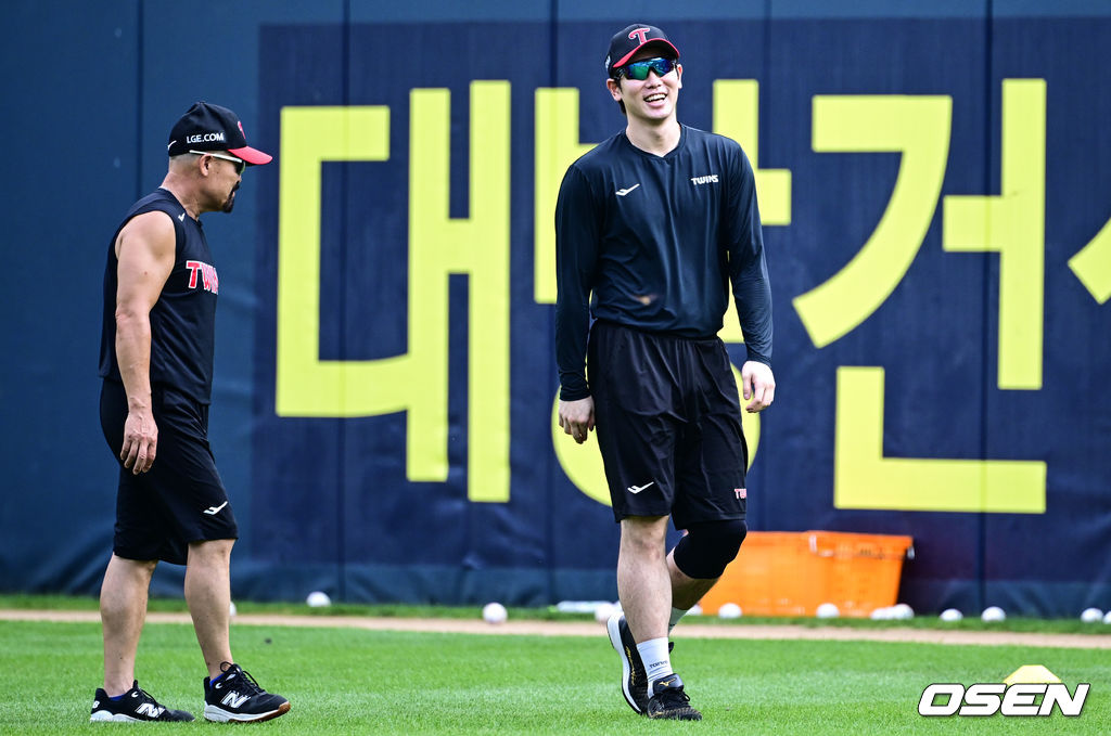 홍창기가 훈련을 위해 그라운드에 들어서자 LG 선수단은 “와우 왕의귀환”이라며 박수를 치며 그를 반겼다.