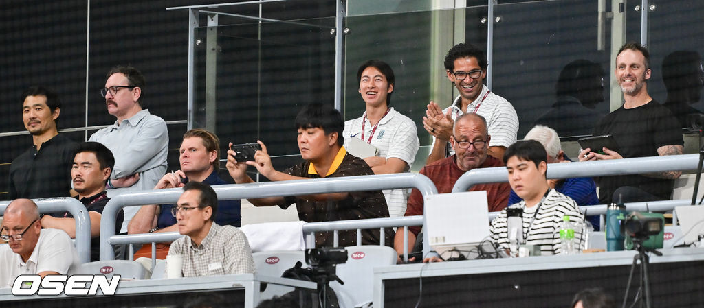 이날 고척돔에는 외국인 선수 폰세와 송성문을 보기 위해 메이저리그 11개 구단 스카우트들이 자리했는데, 정우주의 퍼포먼스에 스카우트들은 자리에서 박수를 치며 환호할 정도로 놀라움을 감추지 못했다.
