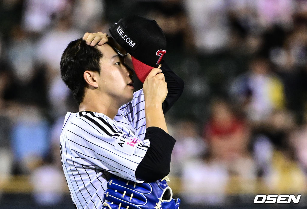 9회초 1사 2,3루에서 키움 임지열에게 희생타를 허용한 LG 유영찬이 아쉬워하고 있다. 2025.08.30 /cej@osen.co.kr