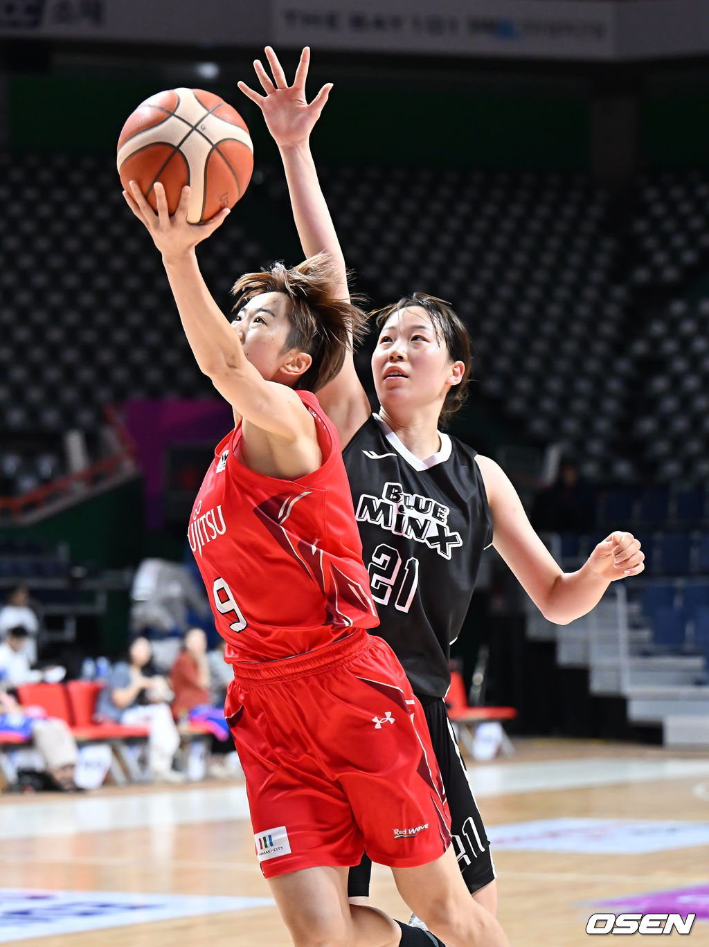 후지쯔(일본) 아카기 리호가 용인 삼성생명 최예슬의 마크를 피해 골밑슛을 시도하고 있다. 2025.09.01 / foto0307@osen.co.kr