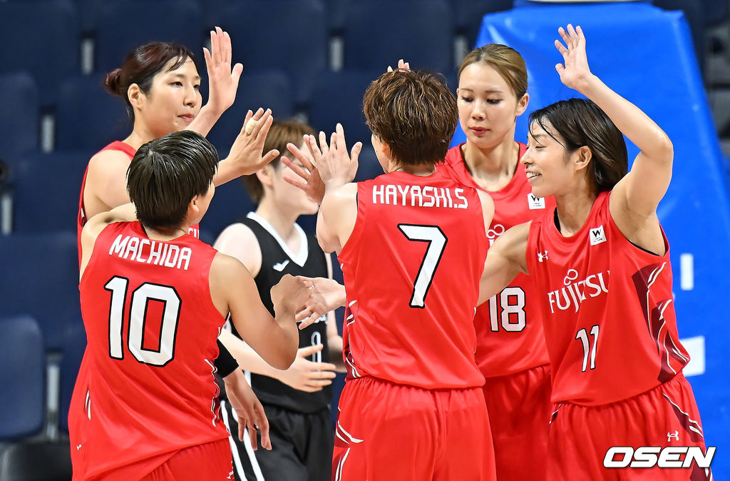 후지쯔(일본) 선수들이 하이파이브를 하고 있다. 2025.09.01 / foto0307@osen.co.kr