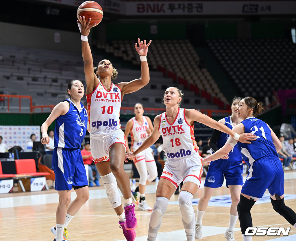 DVTK 훈테름(헝가리) 어호 니너가 인천 신한은행 최이샘의 마크를 피해 골밑슛을 시도하고 있다. 2025.09.01 / foto0307@osen.co.kr