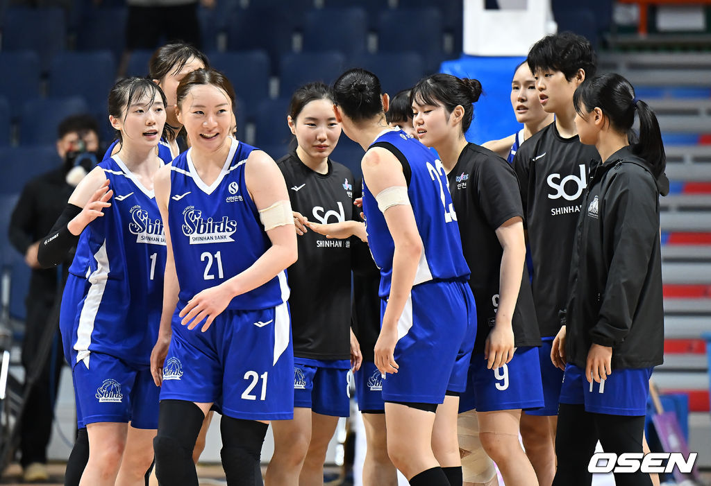 인천 신한은행 선수들이 DVTK 훈테름(헝가리)에 70-63으로 승리, 기쁨을 나누고 있다. 2025.09.01 / foto0307@osen.co.kr