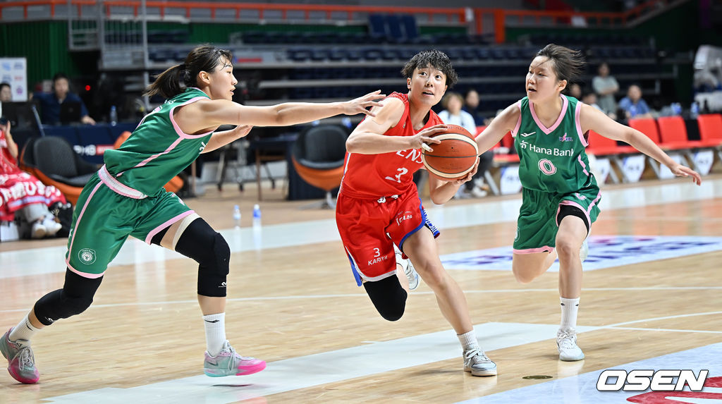 덴소 아이리스(일본) 히라카 마호가 부천 하나은행 정예림, 하지윤의 마크를 피해 골밑돌파를 시도하고 있다. 2025.09.02 / foto0307@osen.co.kr