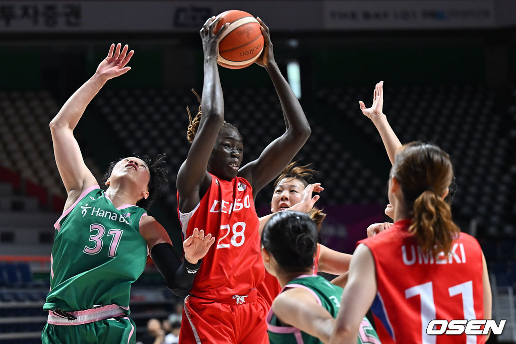 덴소 아이리스(일본) 실라 소크나 파투 디아가 부천 하나은행 진안의 마크를 피해 리바운드볼을 잡고 있다. 2025.09.02 / foto0307@osen.co.kr