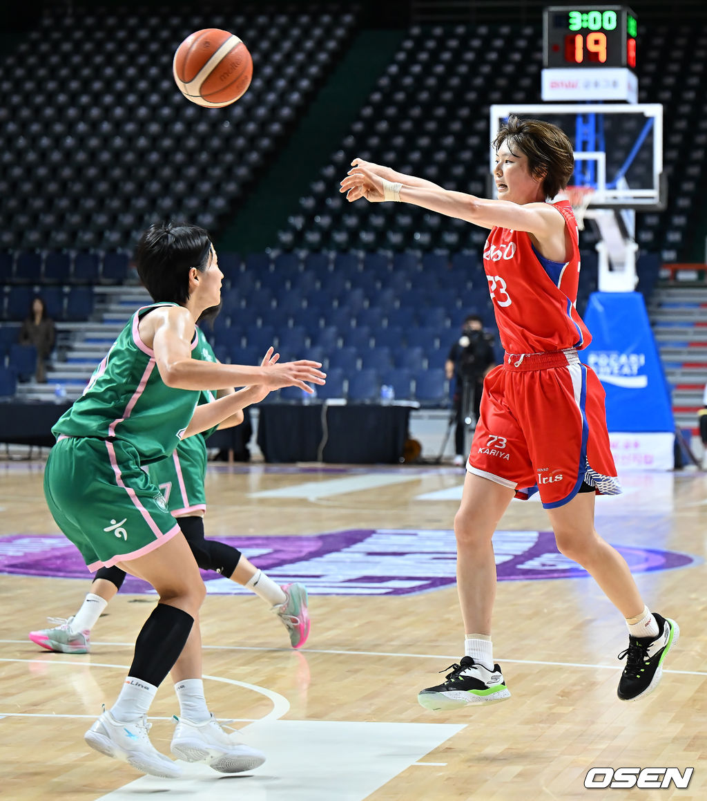 2일 부산 사직실내체육관에서 2025 BNK금융 박신자컵 조별예선 부천 하나은행과 덴소 아이리스(일본)의 경기가 열렸다.